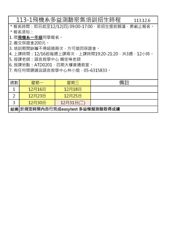 - 有任何問題請洽語言教學中心林小姐,05-6315833。