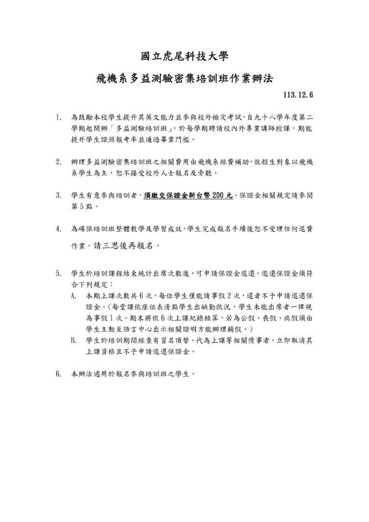 - 培訓期間缺曠不得超過兩次,方可退回保證金。