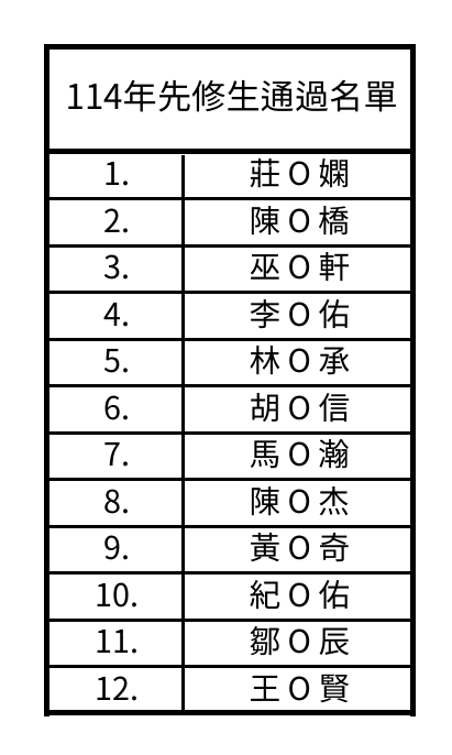 114學年度先修研究生通過名單